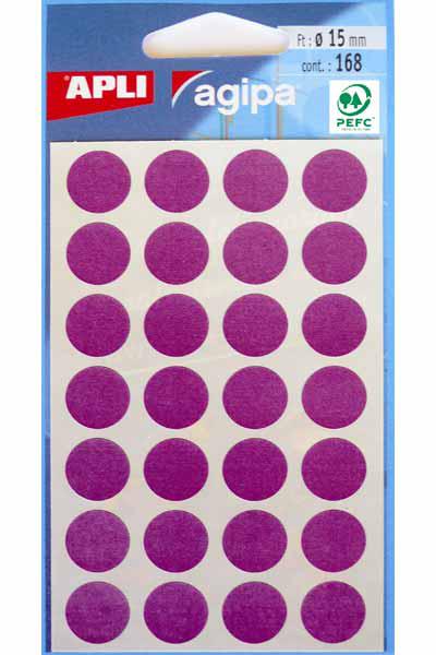 168 GOMMETTES 15MM VIOLET RONDE ADHESIVE ETIQUETTE