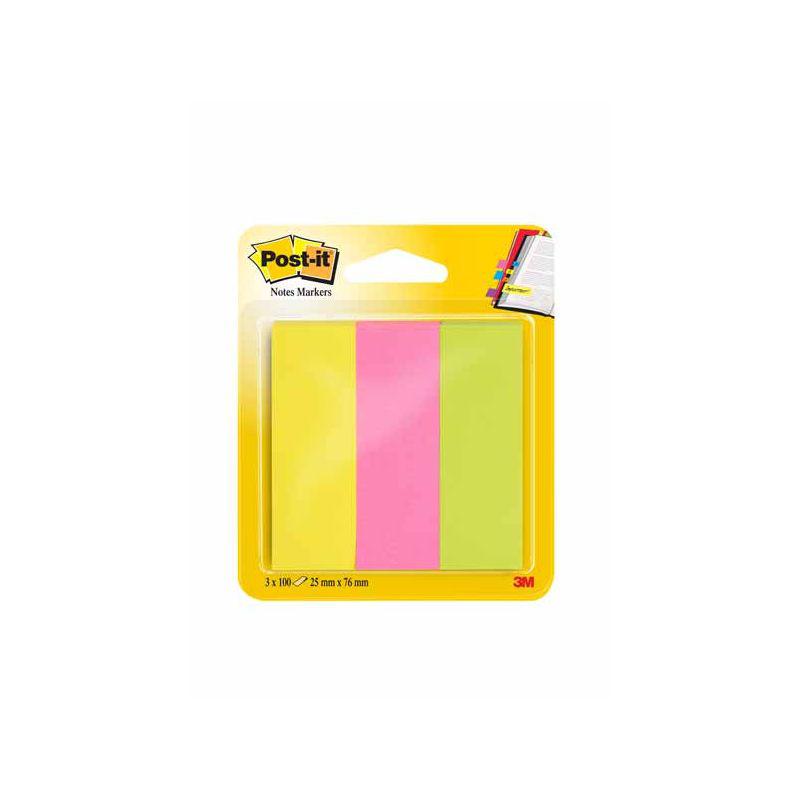 3 POST-IT NOTES NEON 25X76 BLOCS DE 100 FLS PAPIER JAUNE, ROSE ET VERT FLUO