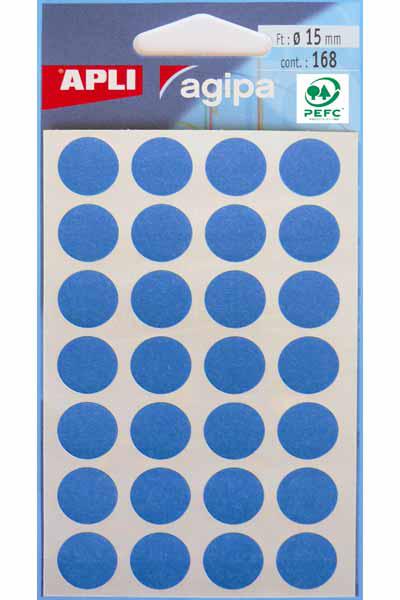 APLI 168 GOMMETTES 15MM BLEU RONDE ETIQUETTE ADHESIVE