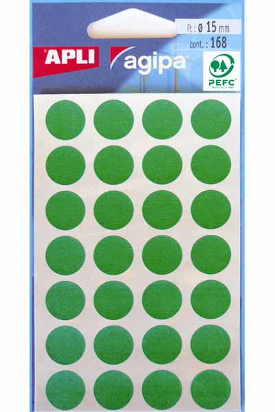 APLI 168 GOMMETTES 15MM VERT RONDE ETIQUETTE ADHESIVE