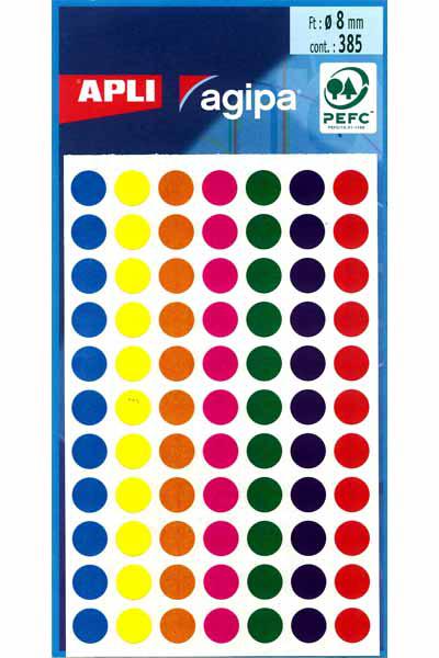 APLI 385 GOMMETTES 8MM ASS RONDE ETIQUETTE ADHESIVE