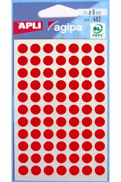 APLI 462 GOMMETTE 8MM ROUGE RONDE ETIQUETTE ADHESIVE