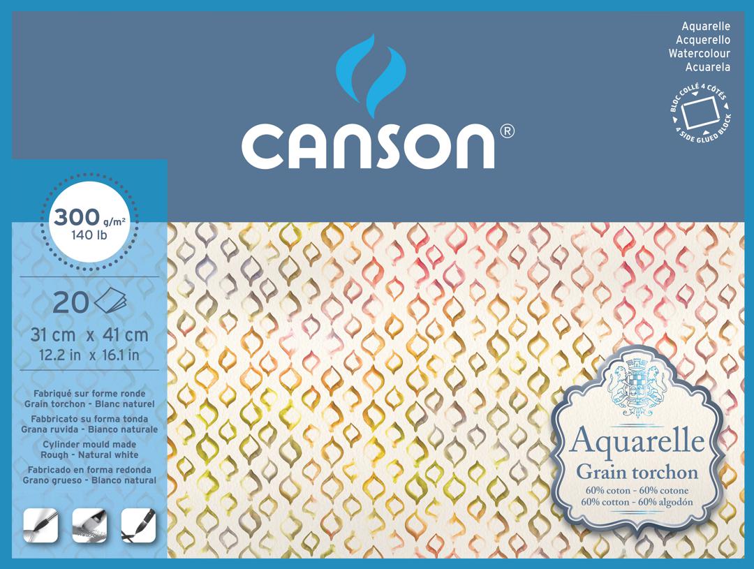 AQUARELLE CANSON 31X41CM 20F 300GR GRAIN TORCHON – CANSON BLOC DESSIN AQUARELLE