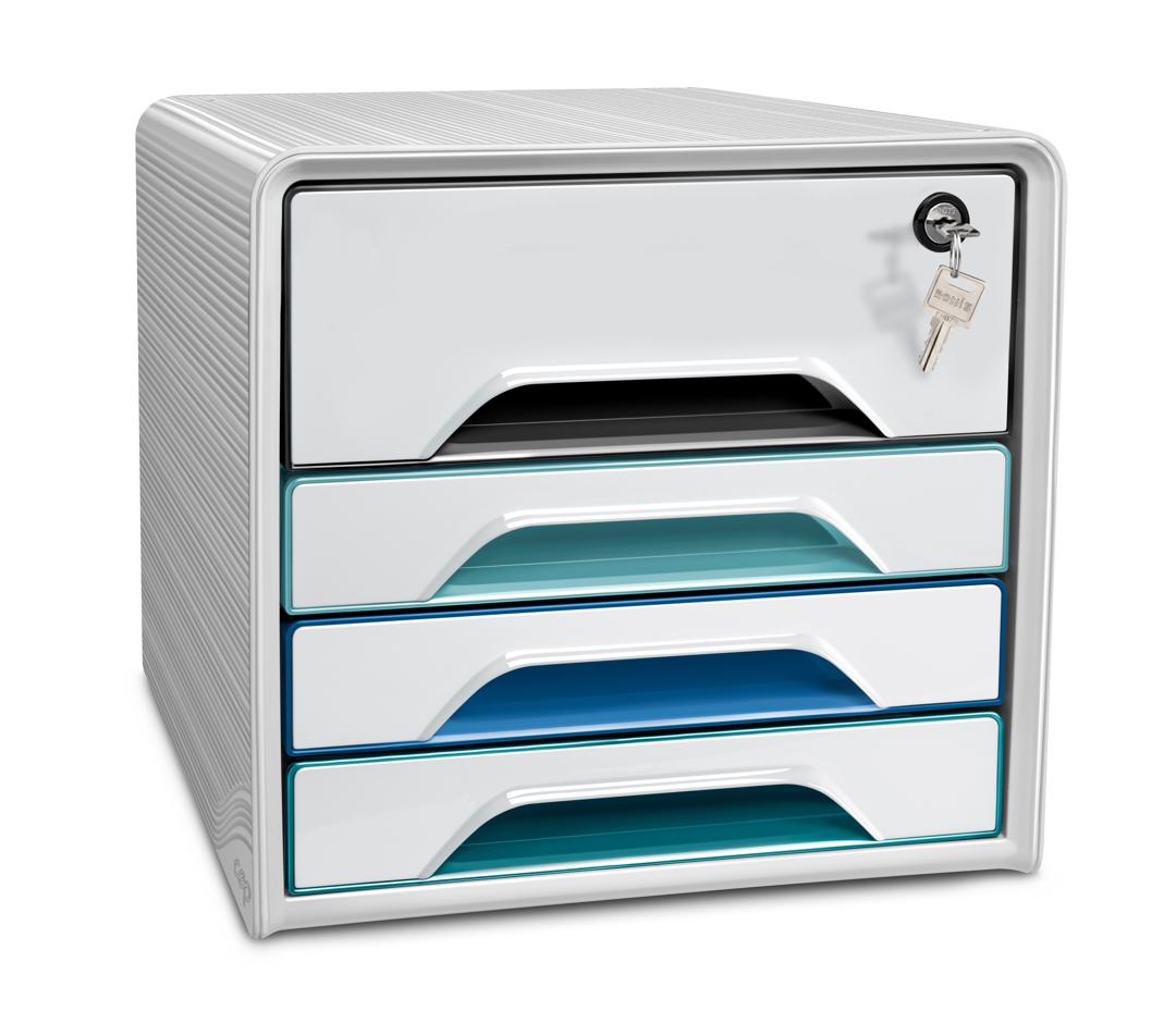 BOX CLASSEMENT CEP 4 TIROIRS BAC COURRIER 4 TIROIRS DONT 1 FERME A CLEF HAUT 8.5CM