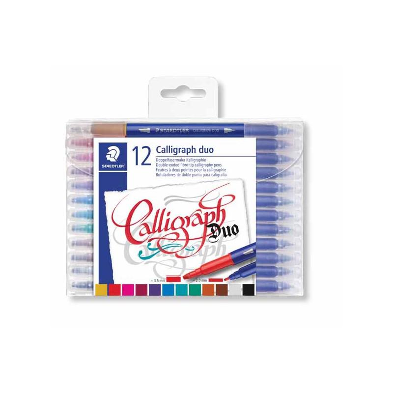 CALLIGRAPHY DUO MARQUEUR 12 STAEDTLER BIPOINTE COULEURS BISEAUTE 3.5MM & 2.0MM BLIST