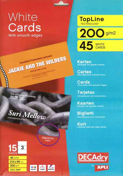CDV BLANCHES 210X99MM 200GR 45 CARTES DE VISITE DECADRY COINS DROITS MULTI IMPRESSIONS