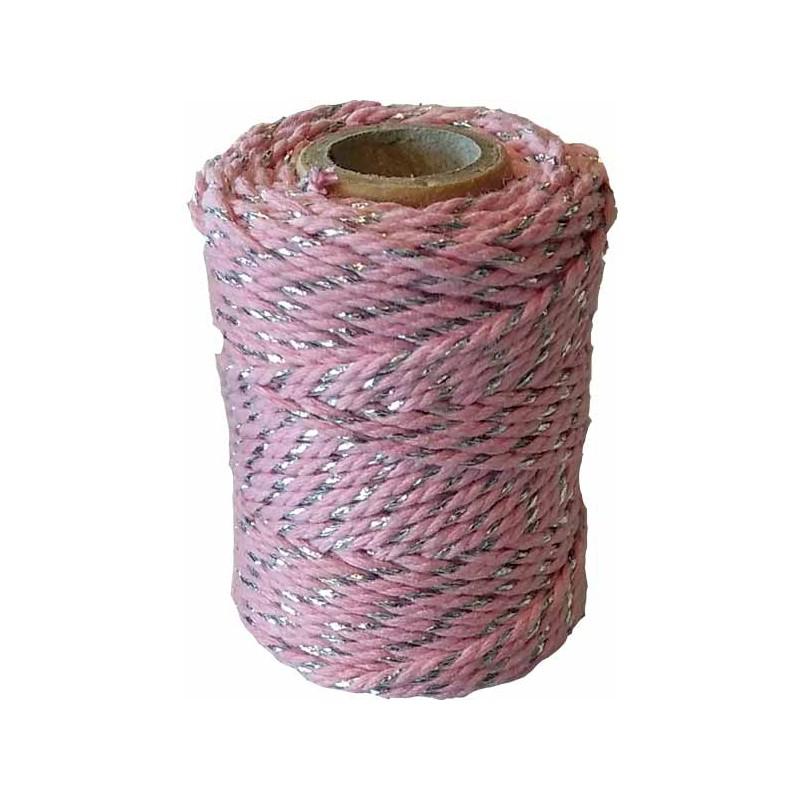 CORDE COTON 20M 1.5MM ROSE CLAIR AVEC FIL ARGENT