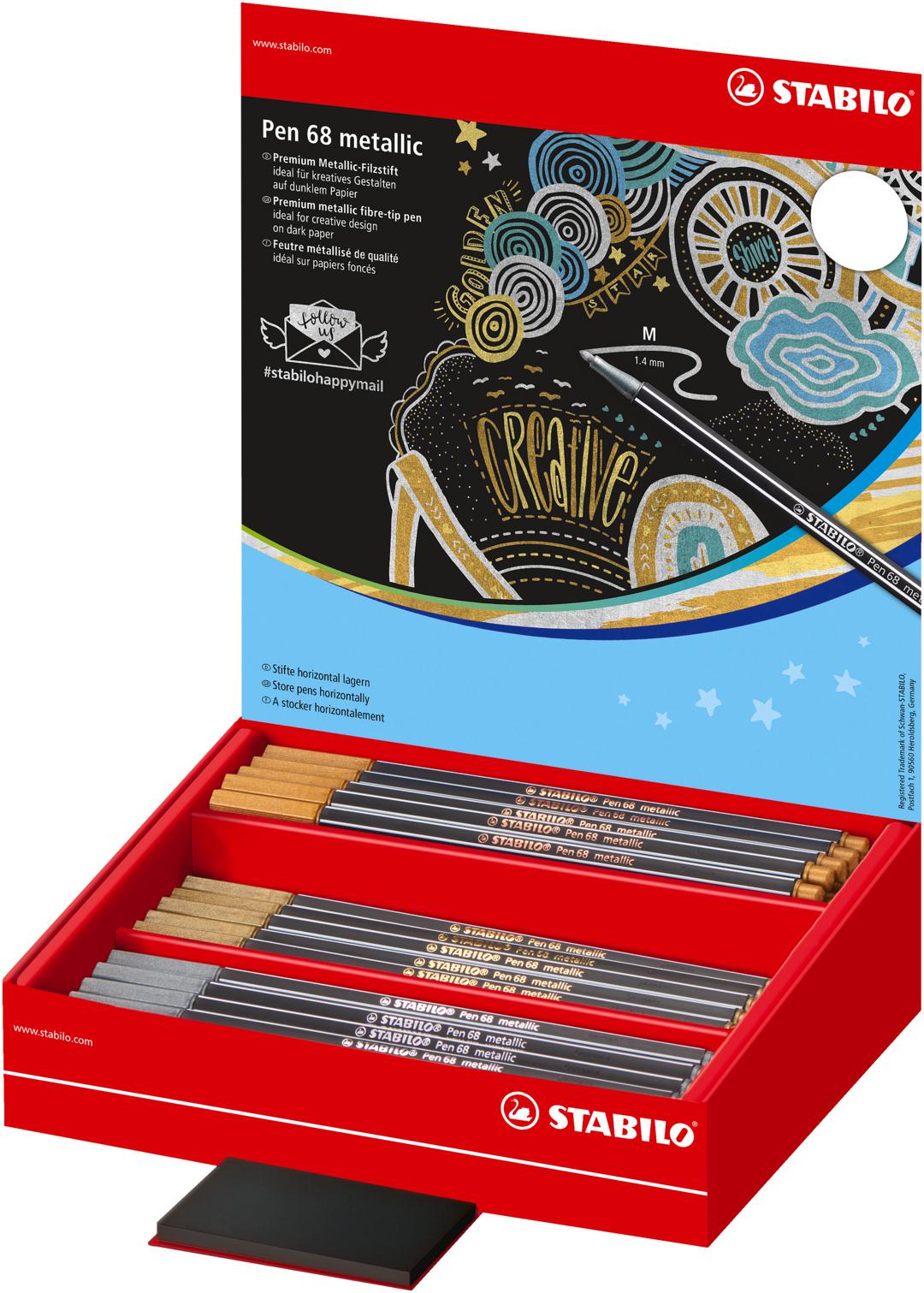 DISPLAY 60 STABILO PEN68 MET OR ARGENT BRONZE