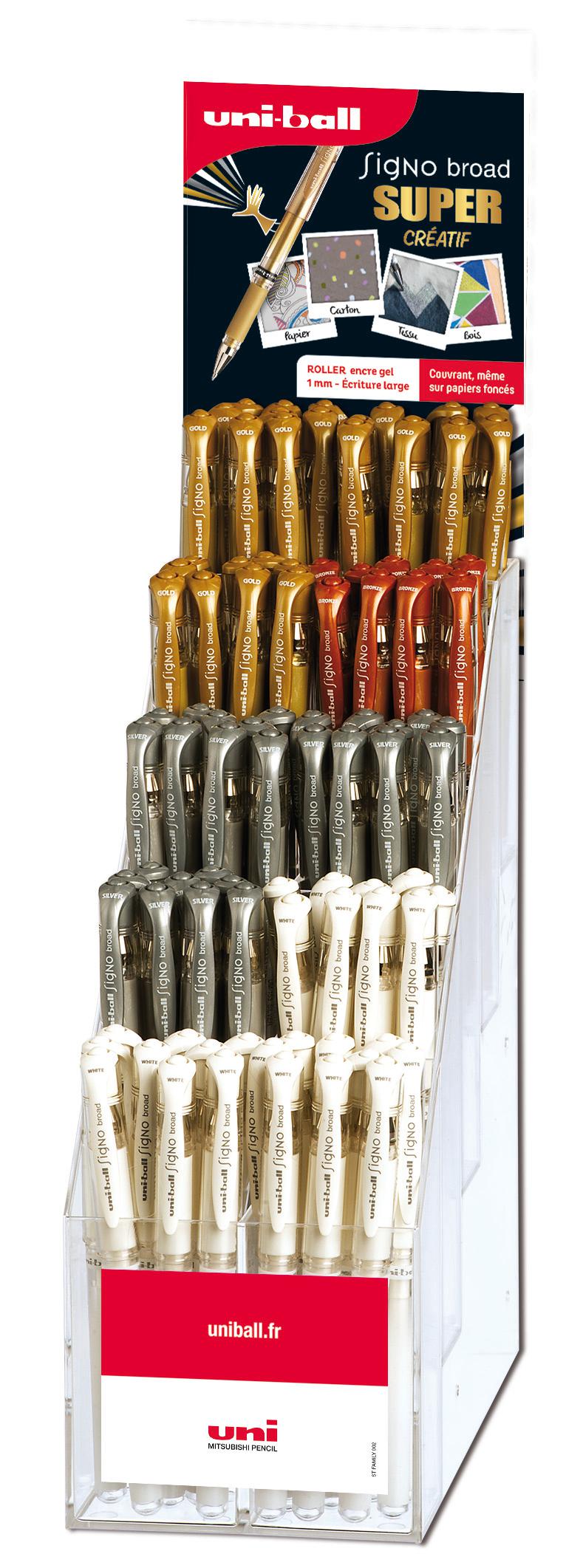 DISPLAY UNIBALL SIGNO BROAD 120PCES OR ARGENT BLANC BRONZE 1MM