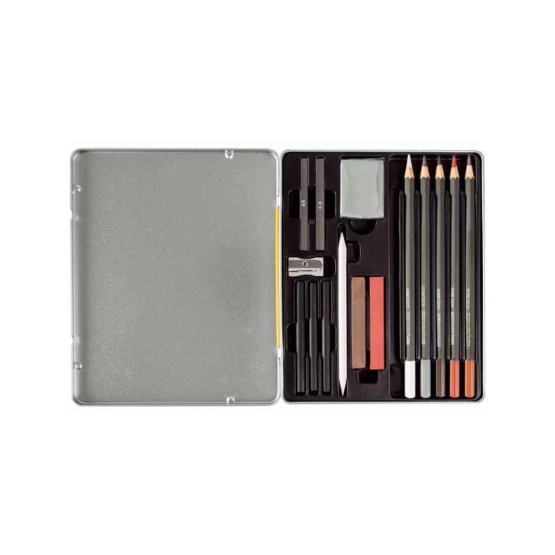 EBERHARD FABER SET ARTISTE 16P CRAYONS-FUSAINS-GOMME MIE PAIN ESTOMPE+TAILLE CRAYON BTE META