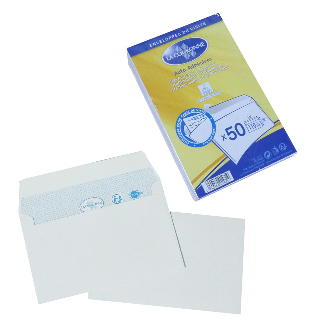 ENVELOPPE C.D.V. 9X14CM PAR 50 ENVELOPPE CARTE DE VISITE 110G AUTO-ADHESIVES – LA COURONNE