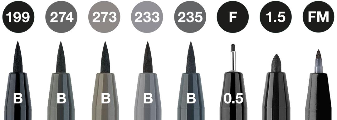 ETUI 8 PITT ARTIST PEN NOIR&GR IS – FABER-CASTELL – ASSORTI
