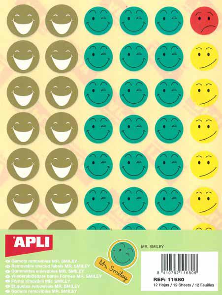 GOMMETTES SMILEY ENLEVABLES 12 FEUILLES – ETIQUETTES APLI RONDE