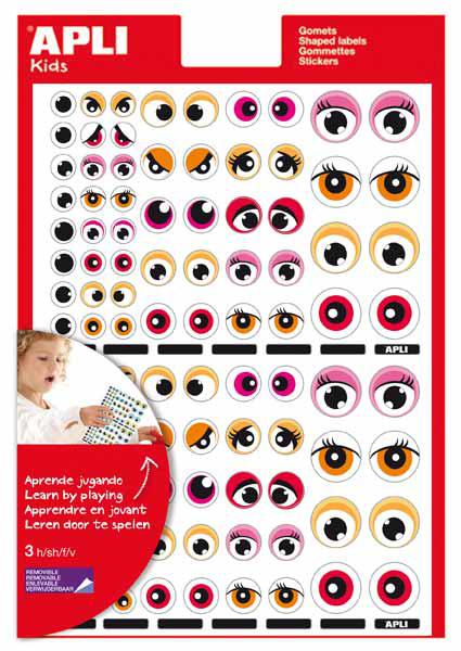 GOMMETTES YEUX ROSE/ORG 312 3 FEUILLES ETIQUETTES APLI ENLEVABLE