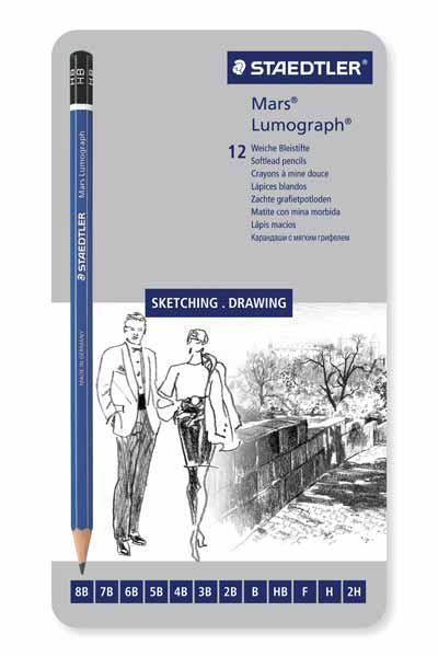 LUMOGRAPH 12 CRAYONS 6B-4H STAEDTLER