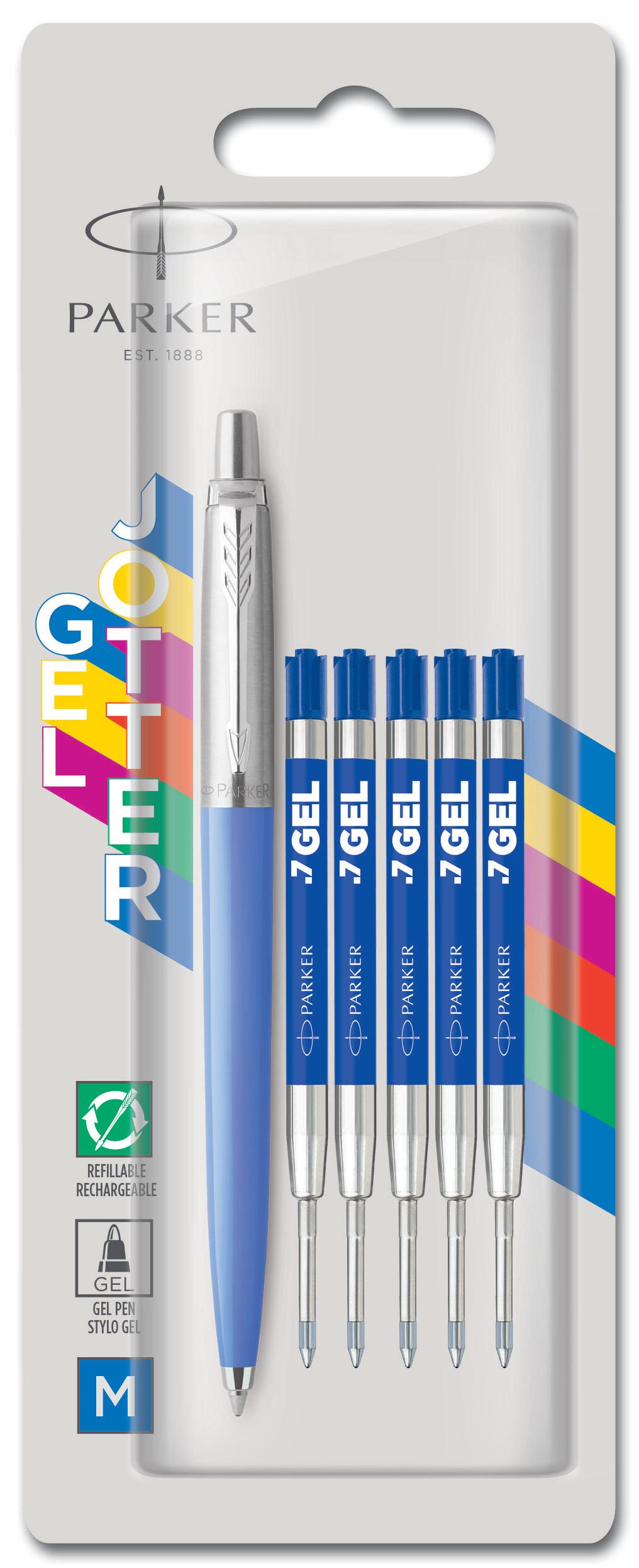 PARKER JOTTER BLEU + 5 RECHARG GEL – POINTE M – BLISTER