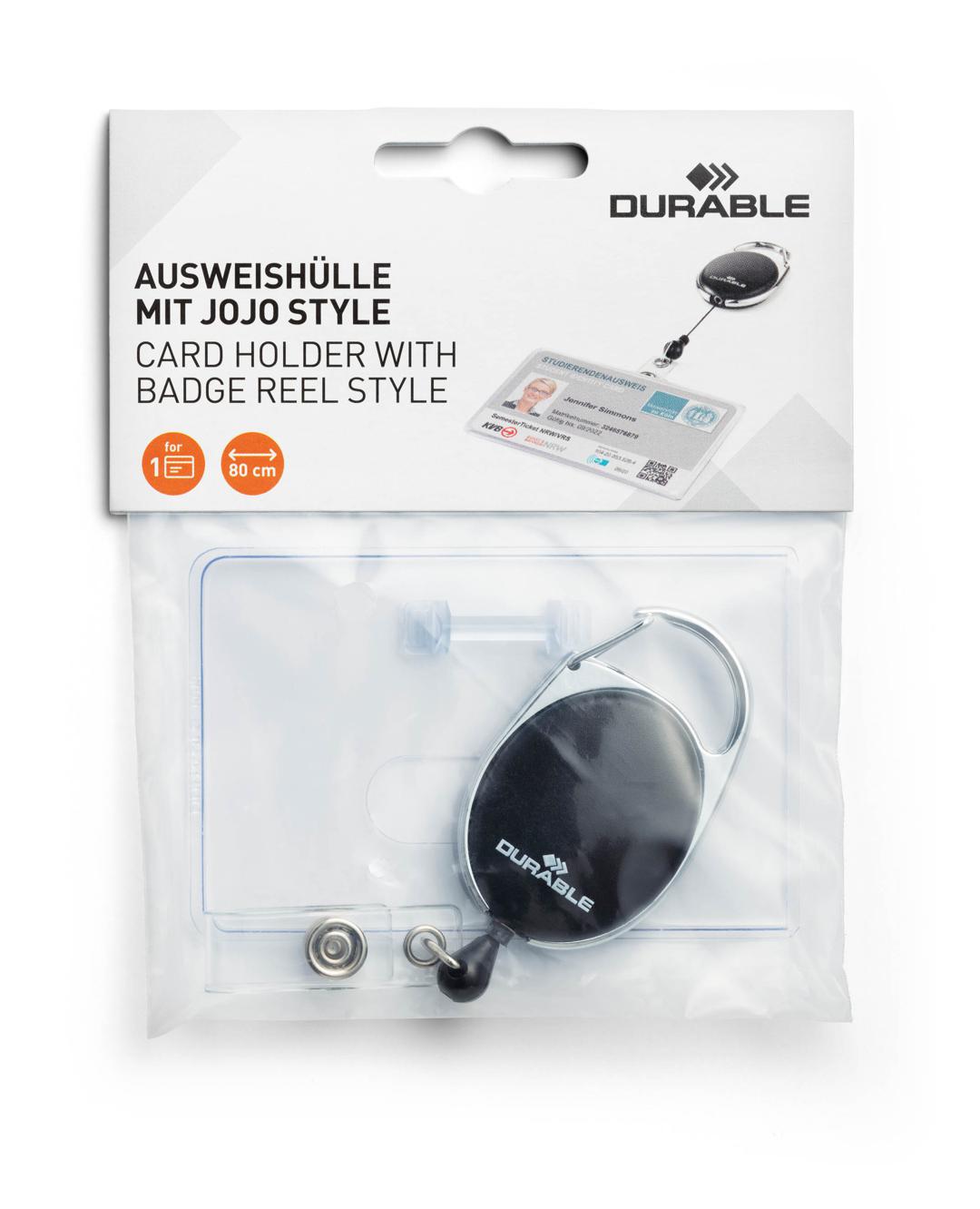 PORTE BADGE STYLE + ENROULEUR POUR 1 CARTE – DURABLE BADGE PORTE-CARTE – CORDON 80CM
