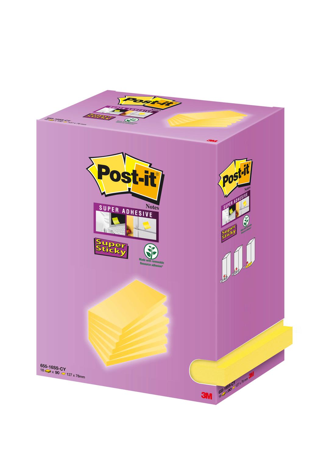 POST-IT 16X 127X76MM JAUNE SUPER STICKY DISTRIBUTEUR