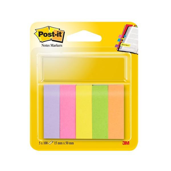 POST-IT INDEX 5 BLOCS 15X50MM 100 FEUILLES ROSE ULTRA, JAUNE ORANGE, VERT, ROSE NEON PAPIER