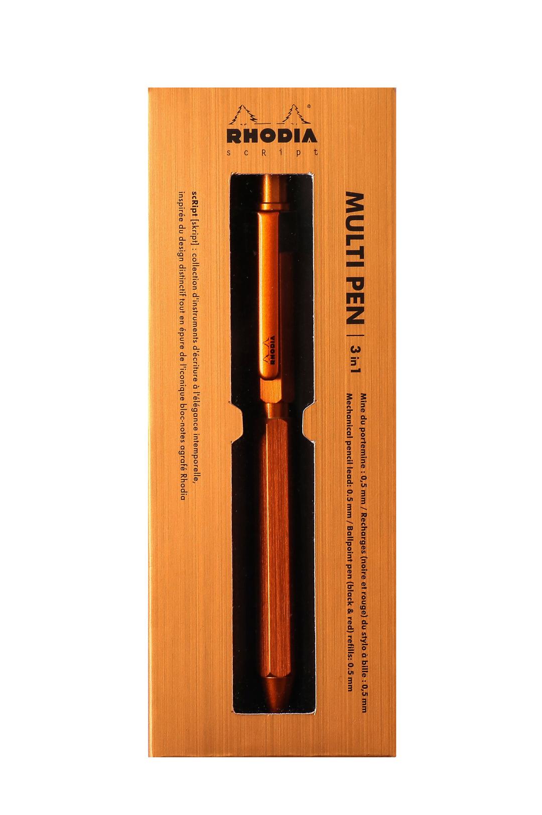 RHODIA MULTI PEN 3EN1 ORANGE BILLE NOIR ET ROUGE + PM 0.5MM ALUMINIUM BROSSE