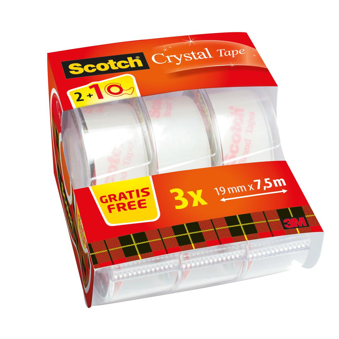 SCOTCH CRYSTAL CADDY PACK 2+1 DEROULEUR 19MM X 7.5M ADHESIF