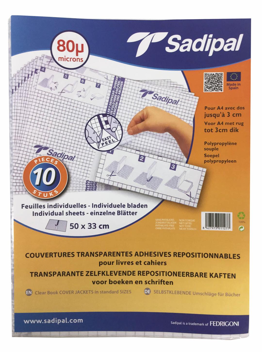 SET 10 COUVERTURES ADHESIVES REPOSITIONNABLES SADIPAL REGLA 50X35CM COUVRE LIVRE CAHIER