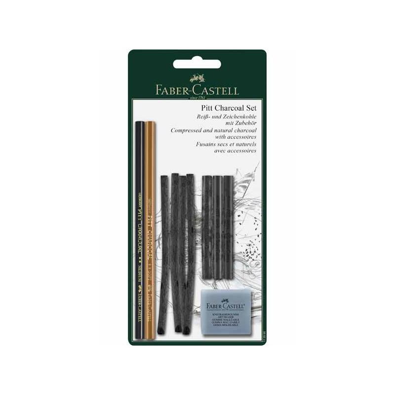 SET 10P FUSAIN BLISTER FABER + ESTOMPE + GOMME MIE DE PAIN HAUTE QUALITE – BLISTER