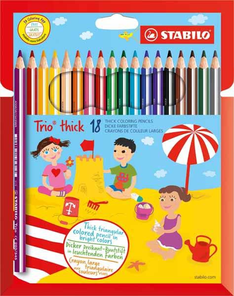 STABILO 18 CRAYONS COUL TRIO GROS CRAYONS DE COULEUR VIVES
