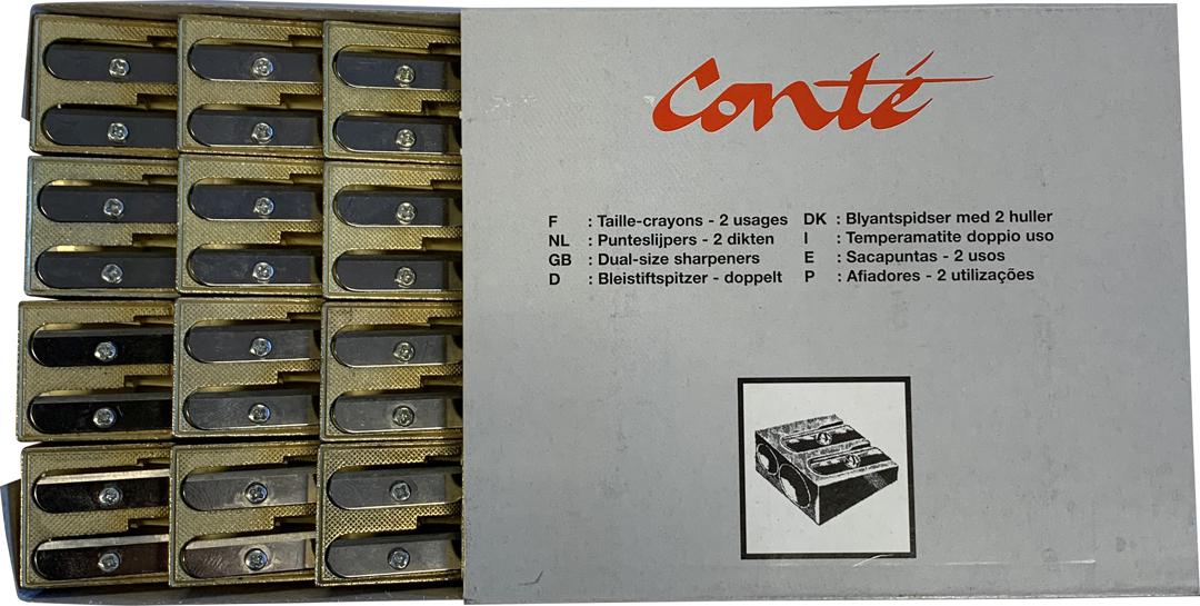 TAILLE CRAYON METAL DBLE CONTE – 2 TROUS DOUBLE – LAITON